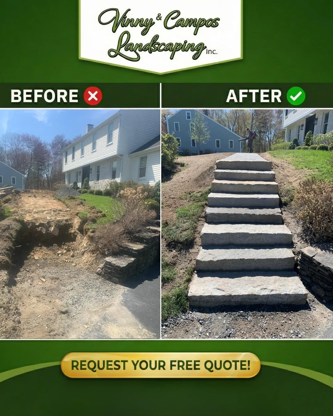 With over 1,000 completed projects and 21+ years of experience, Vinny & Campos Landscaping delivers professional landscaping and hardscaping focused on durability, curb appeal, and total customer satisfaction.